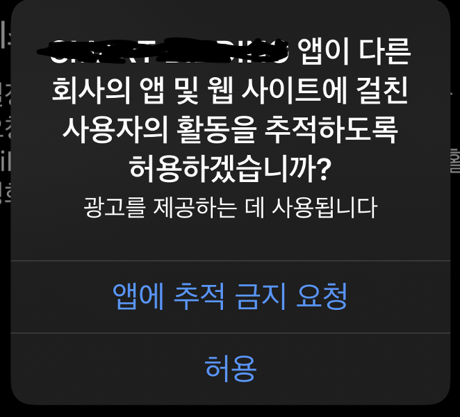 - SKAdNetwork적용을 하게 되면 앱 설치 후 최초 1회만 추적여부 허용 메시지가 노출된다.