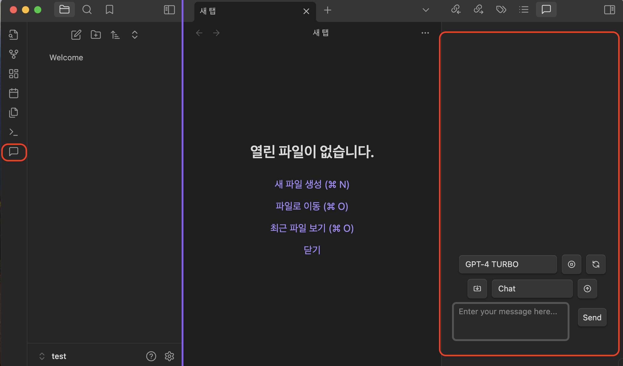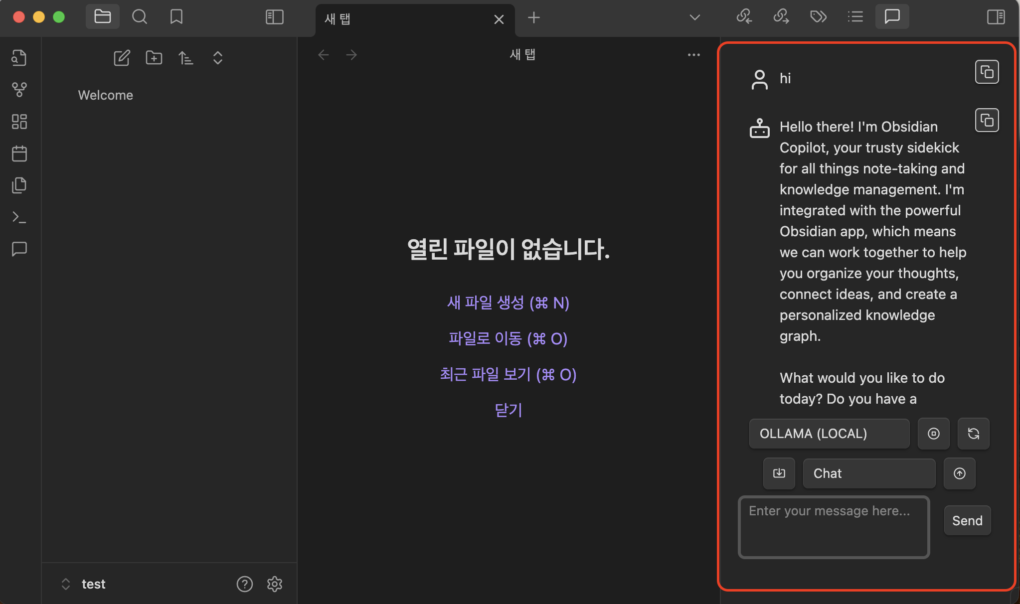 - 좌측 메뉴에서 Copilot Chat을 선택하면 우측에 Chat창이 활성화된다.